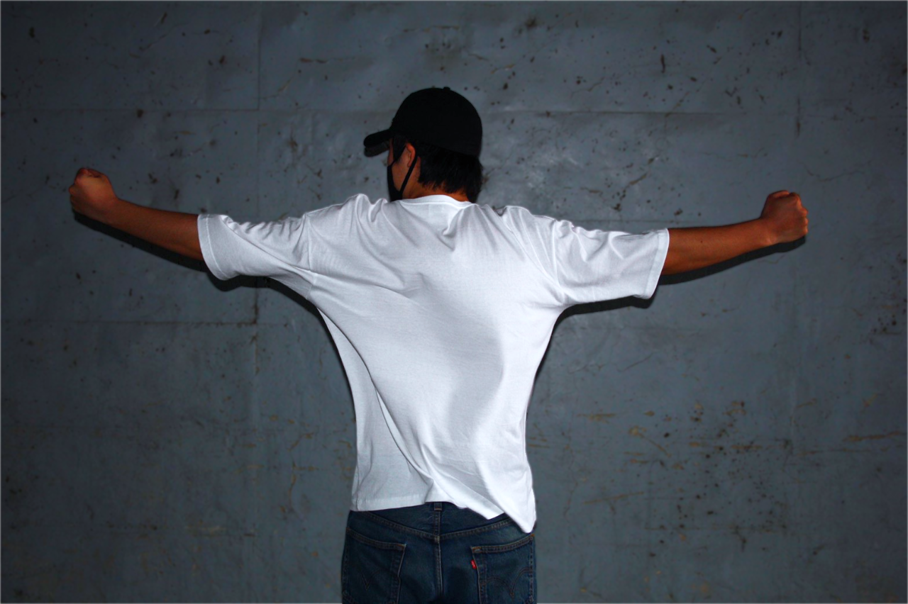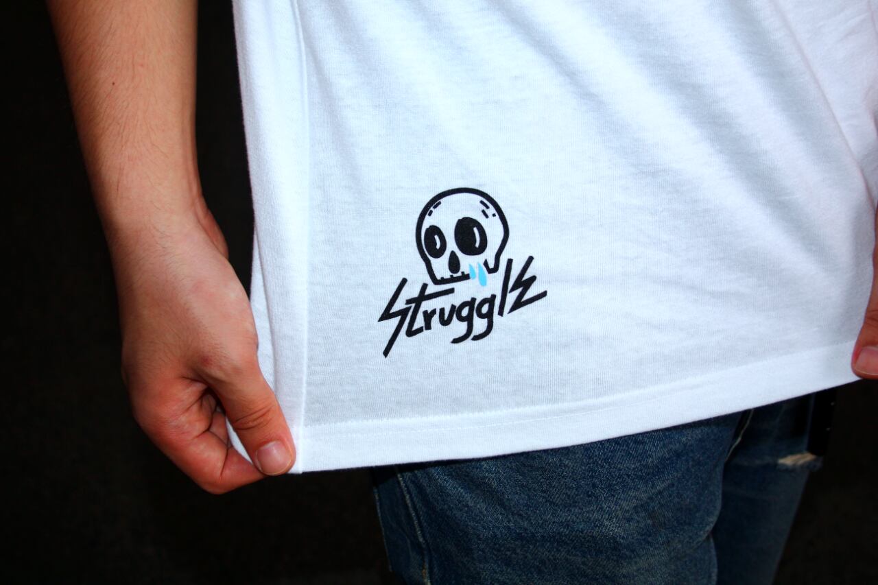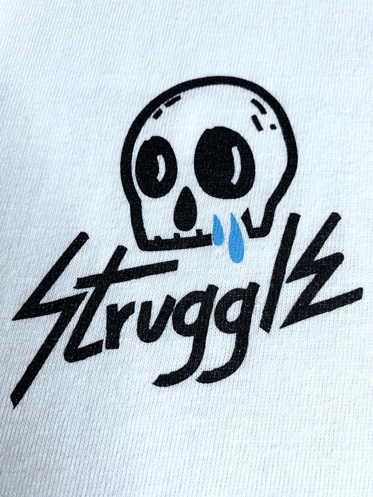 シンプルにSTRUGGLEのロゴを右下へ配置、全体のシルエットを邪魔せず